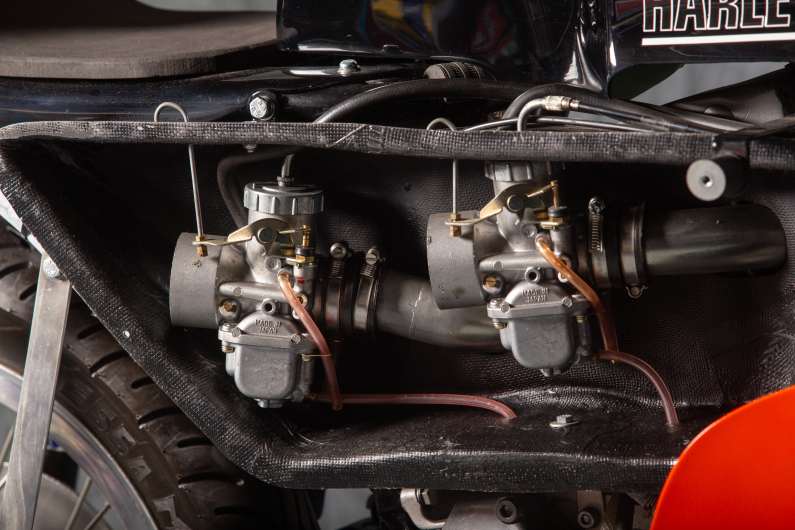 The Harley-Davidson XR750 is a machine defined by function, where every component is shaped by performance. Its lightweight chassis, responsive suspension, and distinctive V-twin engine are built for precision and control, while details like the twin carburettors, exposed mechanics, and minimalist bodywork highlight a pure, uncompromising design. Every element reflects a focus on balance, traction, and mechanical efficiency.